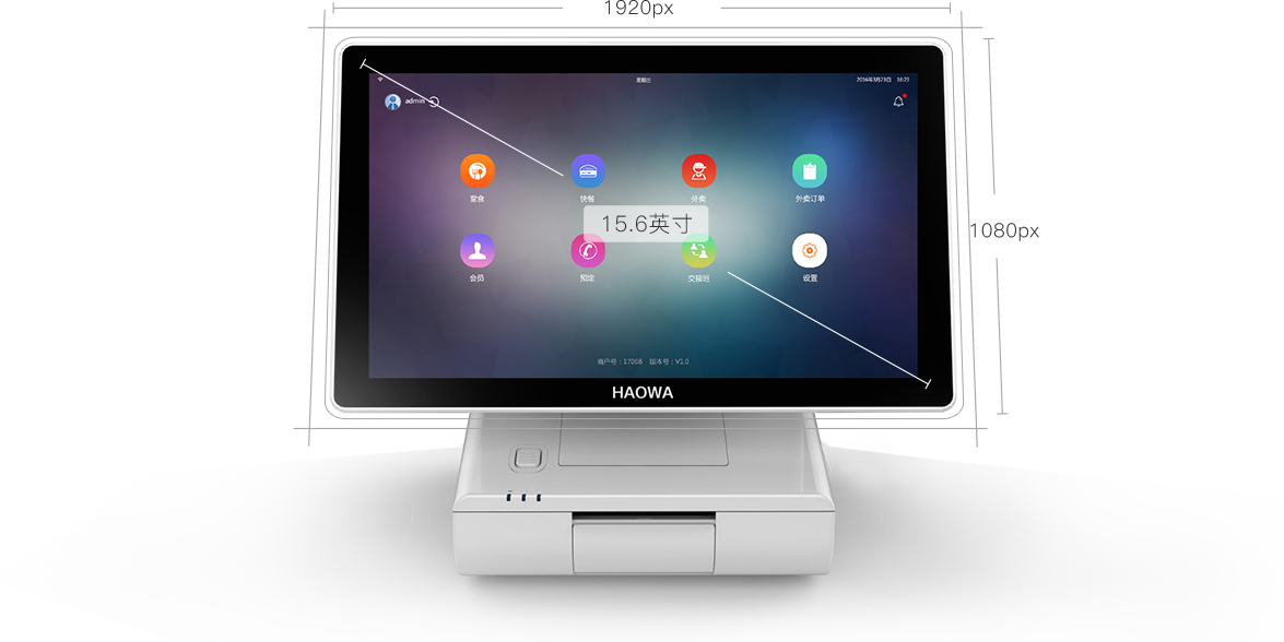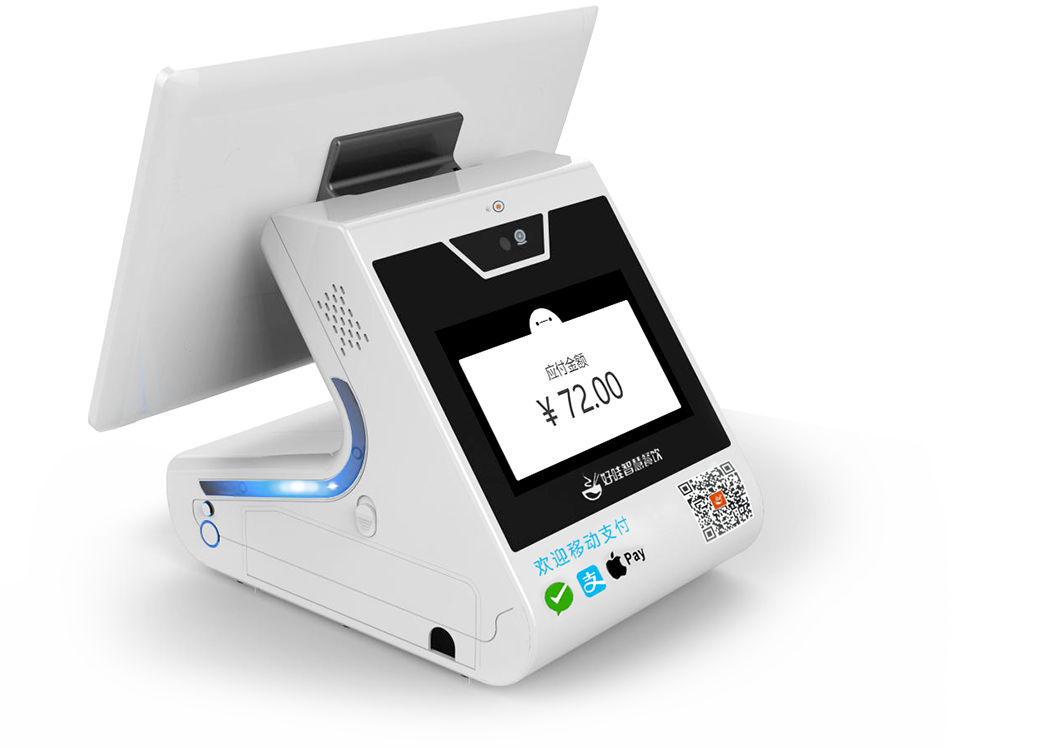 ·豪华象牙白官面机身,配备主、客双显示器、高音质扬声器及小票打印机等多功能硬件于一体